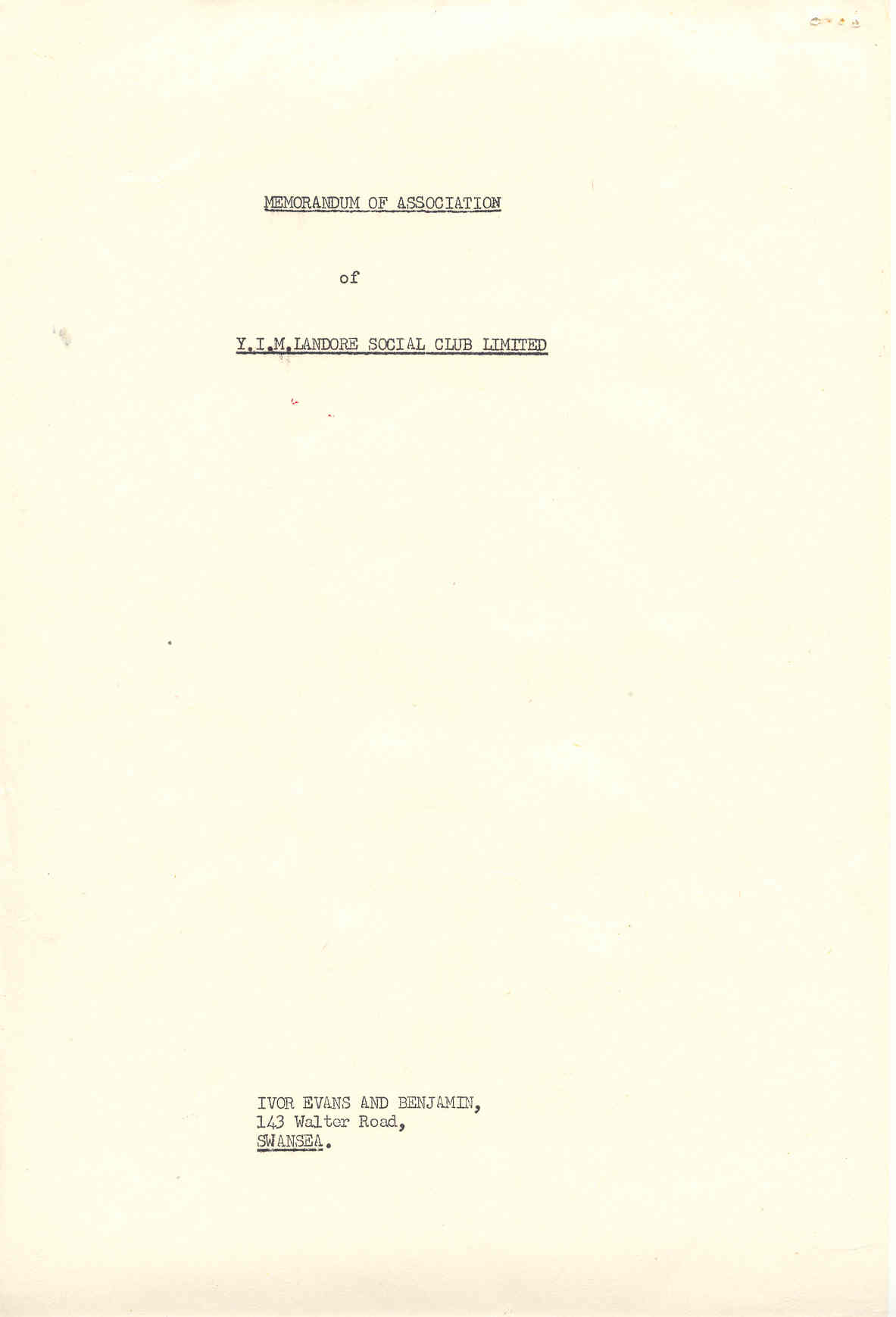 The Club originated in October 1934 by Imperial Chemicals Industry (I.C.I. Ltd)Named I.C.I. Metals Social Club, Swansea Swansea Social ClubThe First Annual General MeetingTo be held in the large hall of the Social Club on Tuesday 14th July 1936, commencing at 7pm. Agenda