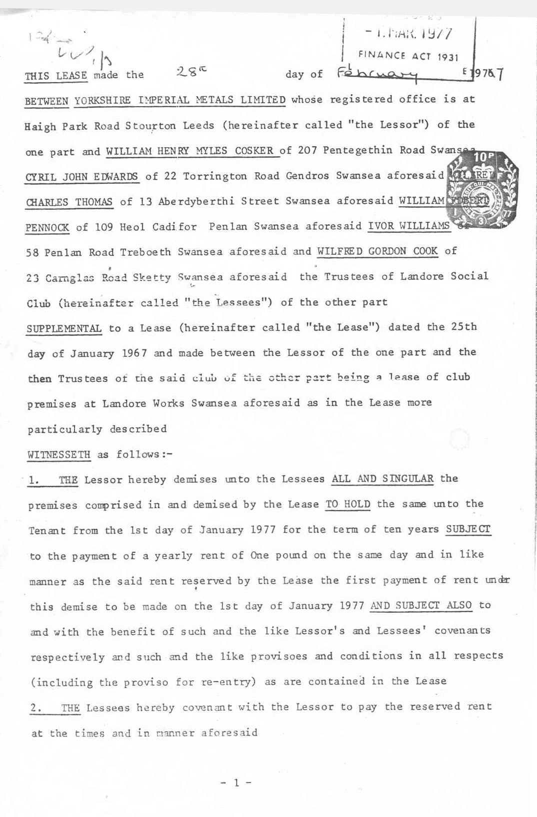 The Club originated in October 1934 by Imperial Chemicals Industry (I.C.I. Ltd)Named I.C.I. Metals Social Club, Swansea Swansea Social ClubThe First Annual General MeetingTo be held in the large hall of the Social Club on Tuesday 14th July 1936, commencing at 7pm. Agenda